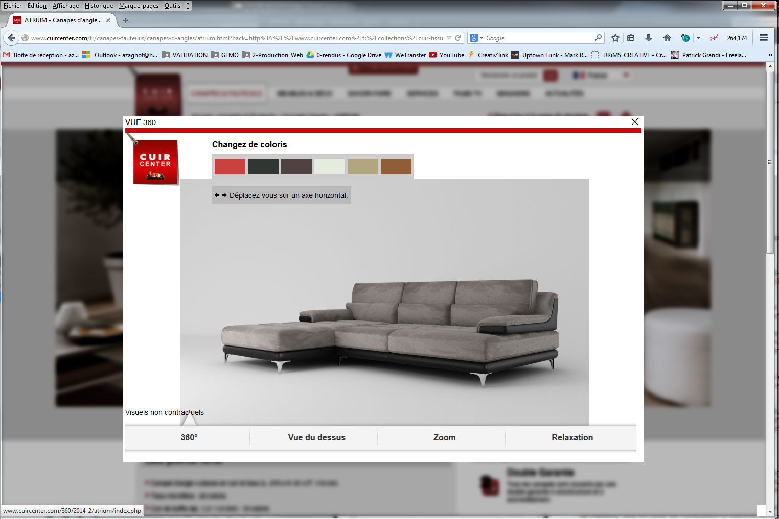 Création des éléments 3D du configurateur Follow Me , marque du groupe Eram.Configurateur test sur borne tactile en magasin