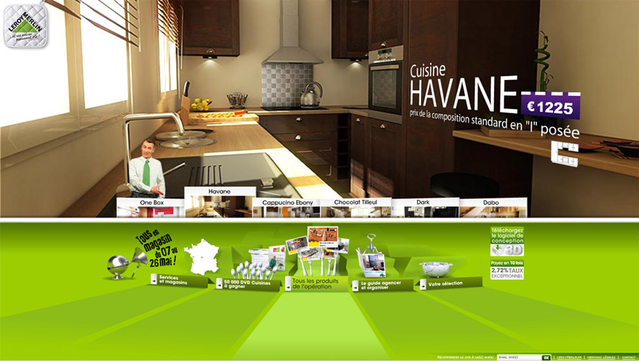 Creation d'elements de l'interface du Site evenementiel "On veut une nouvelle cuisine" pour Leroy Merlin.